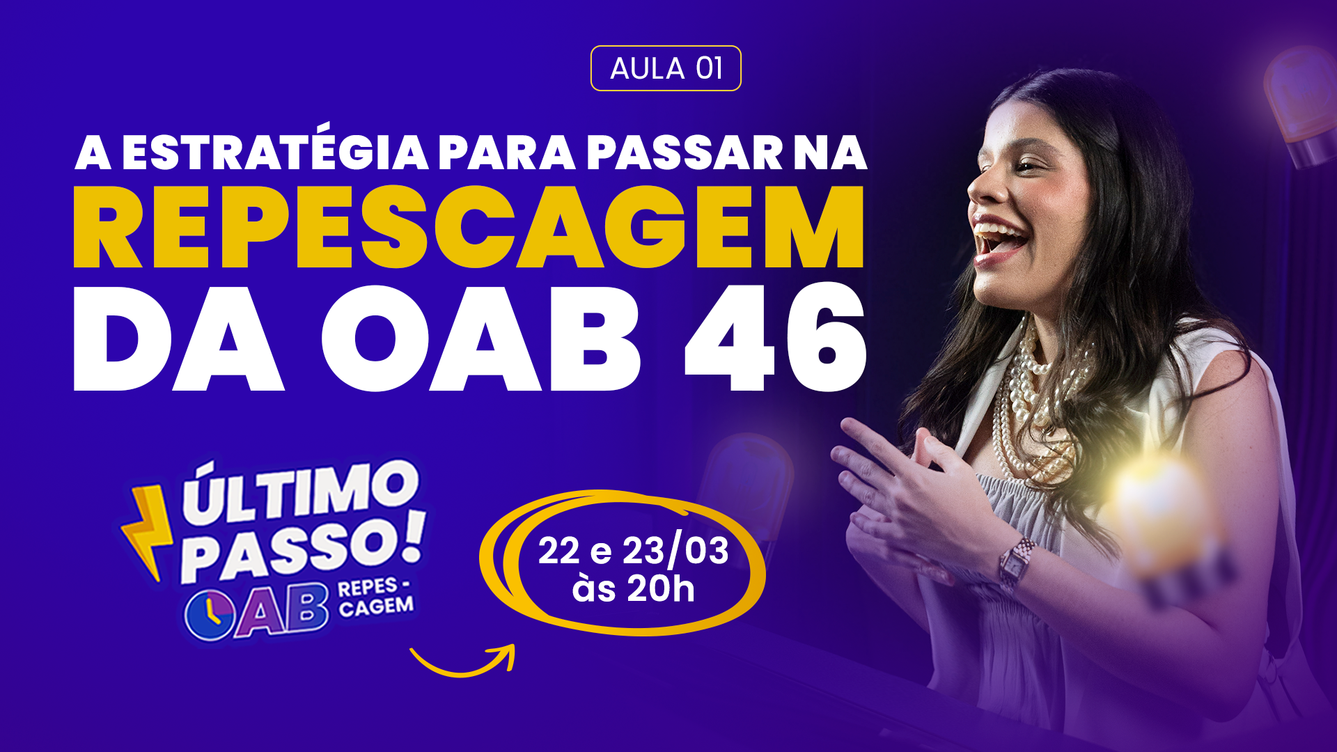 Nos dias 22 e 23 de março, vamos te mostrar ao vivo o que realmente reprova na 2ª fase — e como corrigir cada um desses erros antes da Repescagem da OAB 46. Sem enrolação, sem falsas esperanças. Só o caminho mais direto até a sua carteirinha.